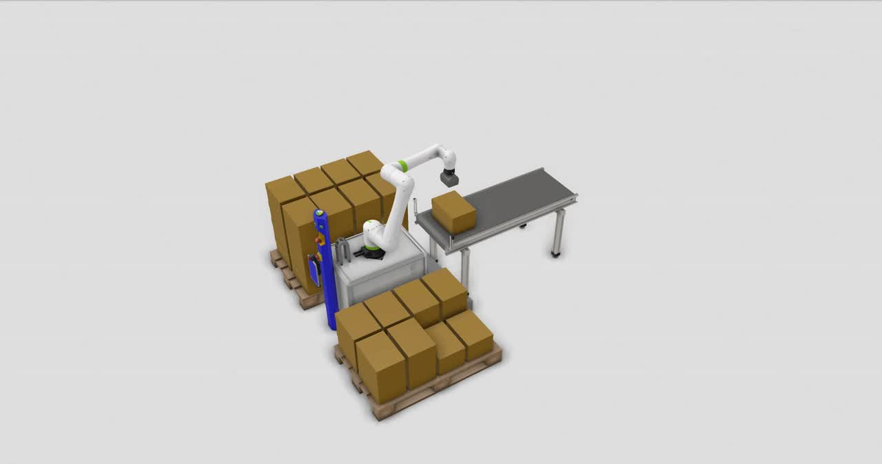 Die AWARONIC Cobot-Palettierzelle ist die smarte Lösung für automatisiertes Palettieren in jeder Produktionsumgebung. Dank kollaborativem Roboterarm, kompaktem Design und intuitiver Bedienung optimieren Sie Ihre Prozesse – ganz ohne Schutzzaun.